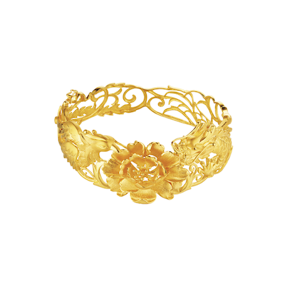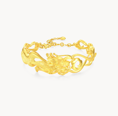 以立體感強烈的浮雕工藝打造黃金龍鳳手鐲,融入現代元素,時尚又不失傳統,充滿中式喜慶氣息。